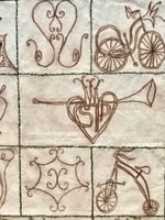 Punta seca sobre acetato estampada en tela de algodón 100% y bordada a mano, pieza única de 100 × 70 cm aprox.
