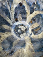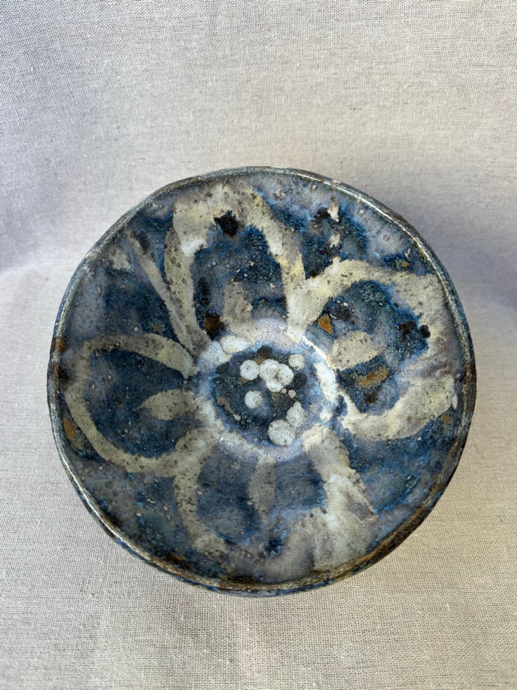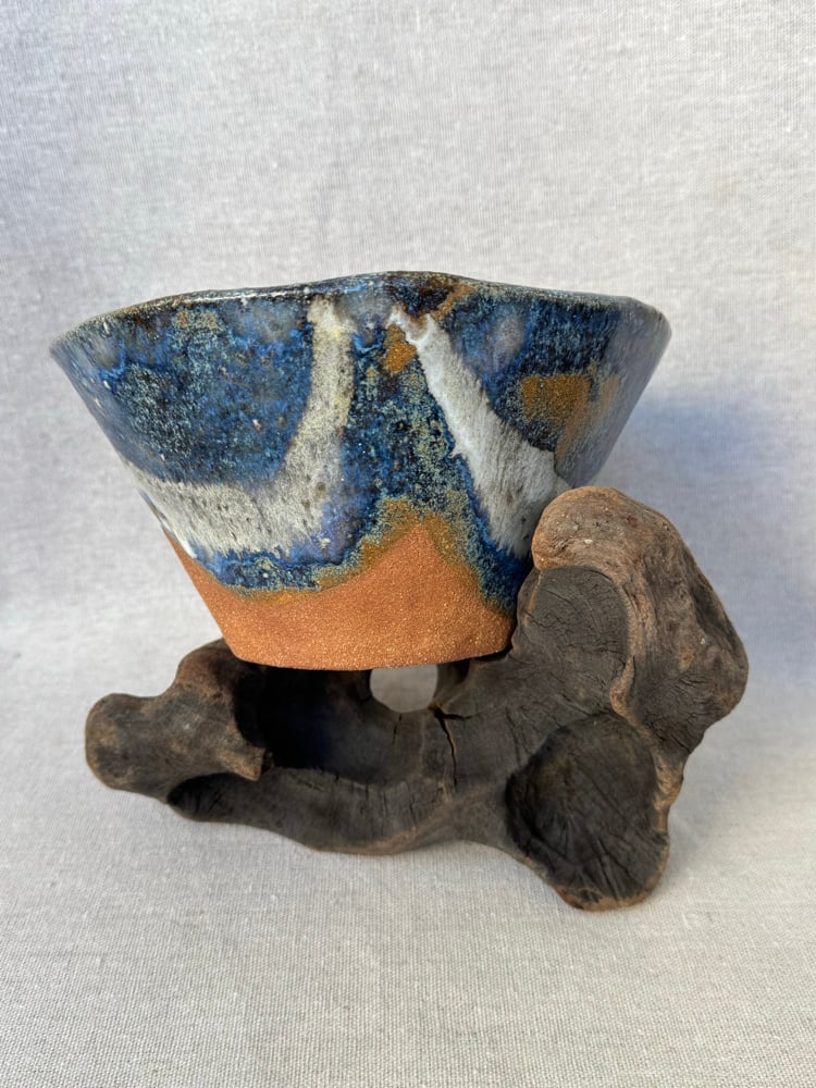 Pieza en barro refractario hecha a mano. Esmaltada y cocida a 1250 grados en horno de gas manual en atmósfera reductora.