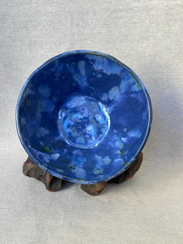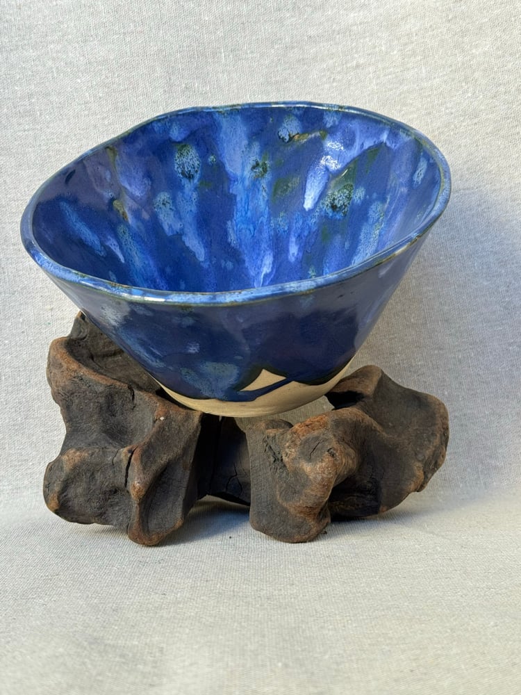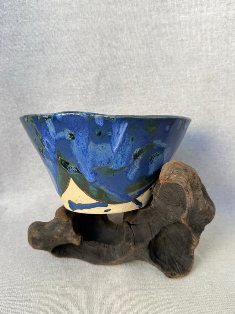 Pieza en barro refractario hecha a mano. Esmaltada y cocida a 1250 grados en horno de gas manual en atmósfera reductora.