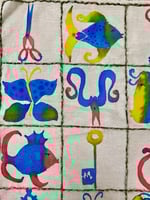 Cada pieza está realizada en algodón 100% pintado a mano con tintas serigráficas y bordado a mano. Un proceso lento donde la imagen se revela capa a capa, como si brotara desde el propio tejido. Hay un pulso íntimo en cada puntada, una vibración ligera en cada color, algo que parece mantener viva la memoria de un mito que nunca termina de contarse.