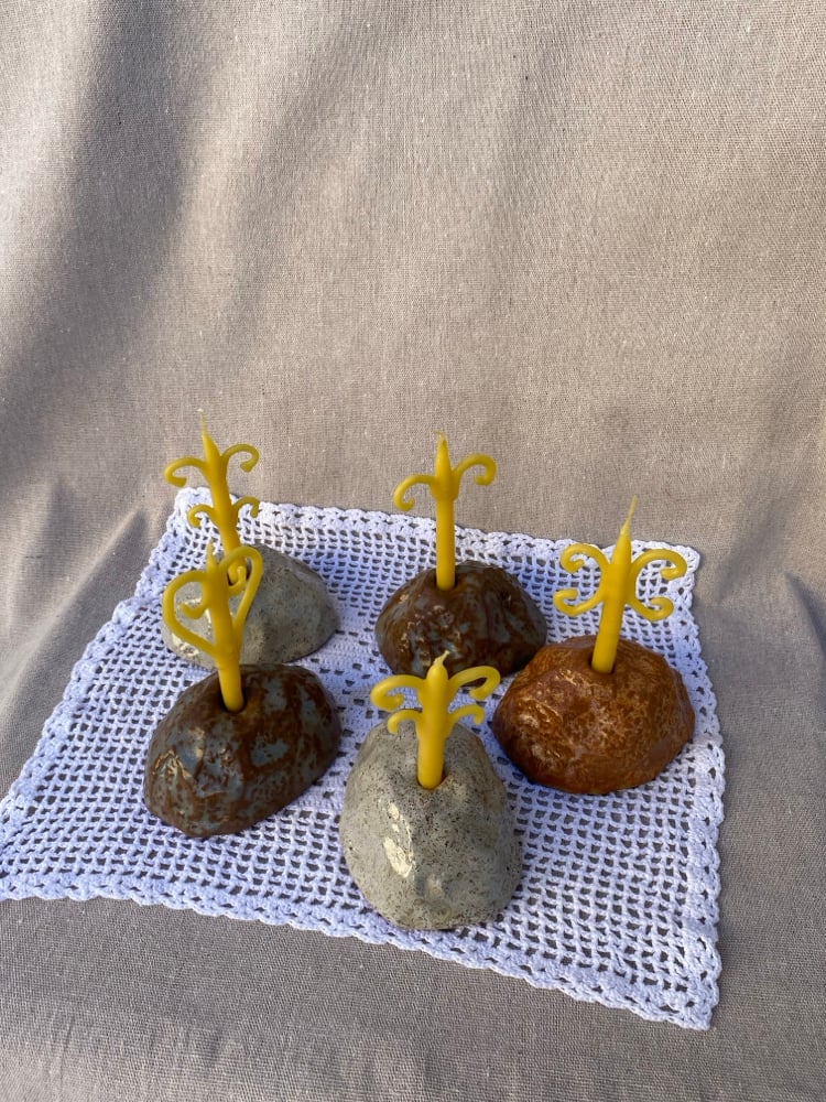 Cada pieza es distinta, pensada para acoger la vela y darle peso, presencia y cuidado.