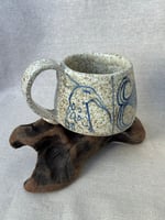 Pieza en barro refractario blanco hecha a mano. Esmaltada y cocida a 1250 grados en horno de gas manual en atmósfera reductora.